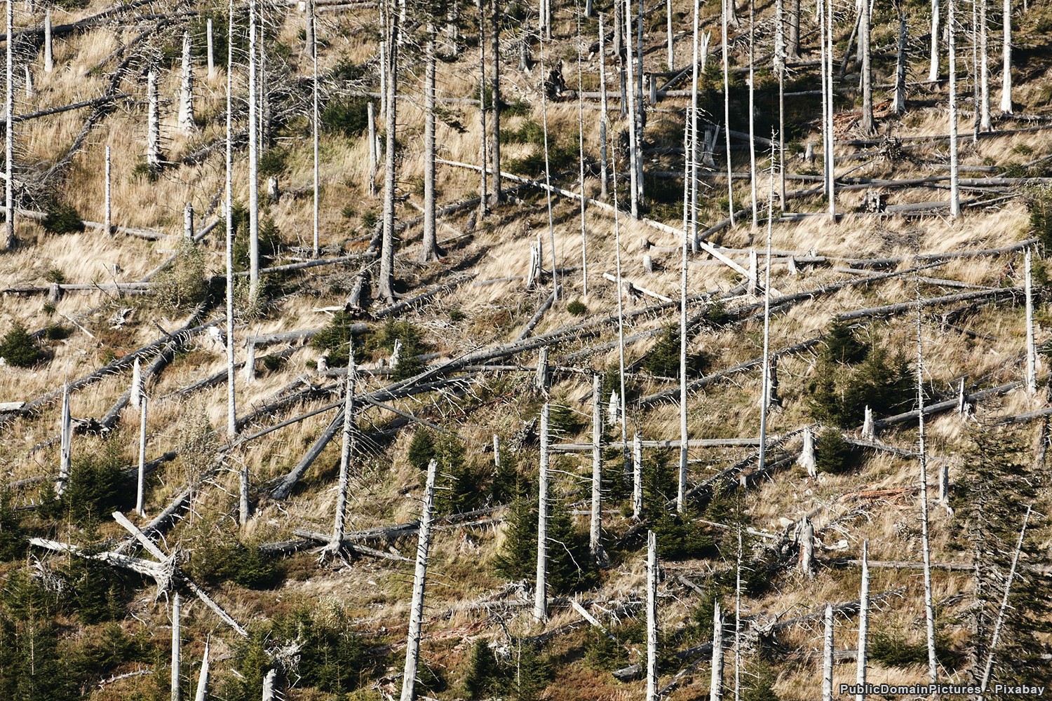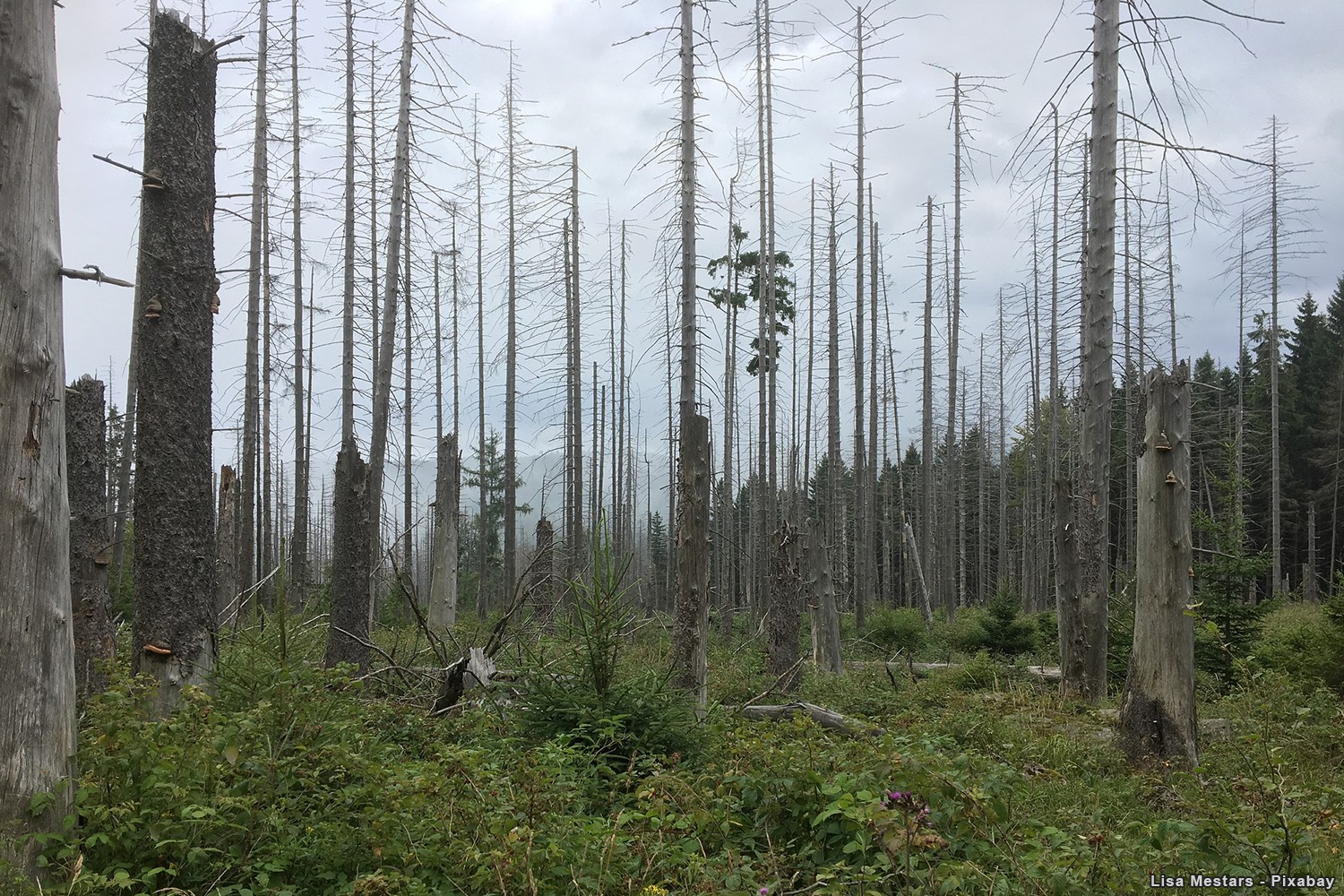 A légszennyező környezeti hatásoktól legyengült erdőn szélvihar söpört végig, ami tovább mélyítette a hátrányos helyzetű terület gondjait