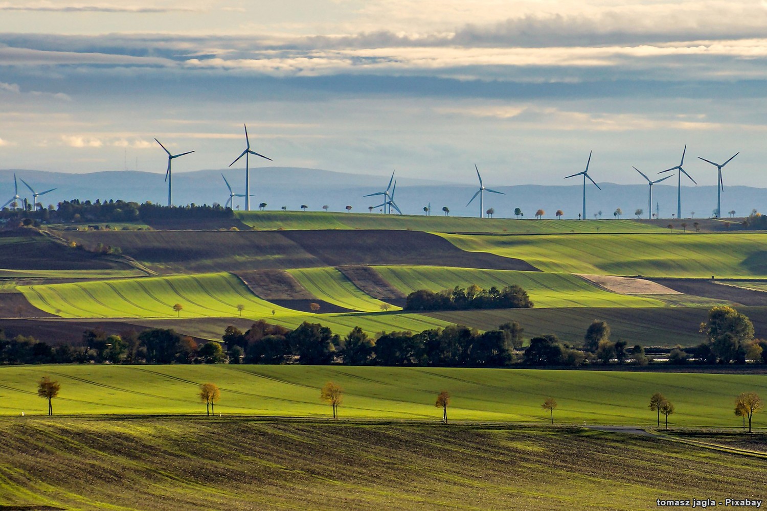 Hatalmas területek művelés alatt - de itt tettek előre egy komoly lépést: színesítették az egyhangú látványt telepített fákkal és megújuló energiával