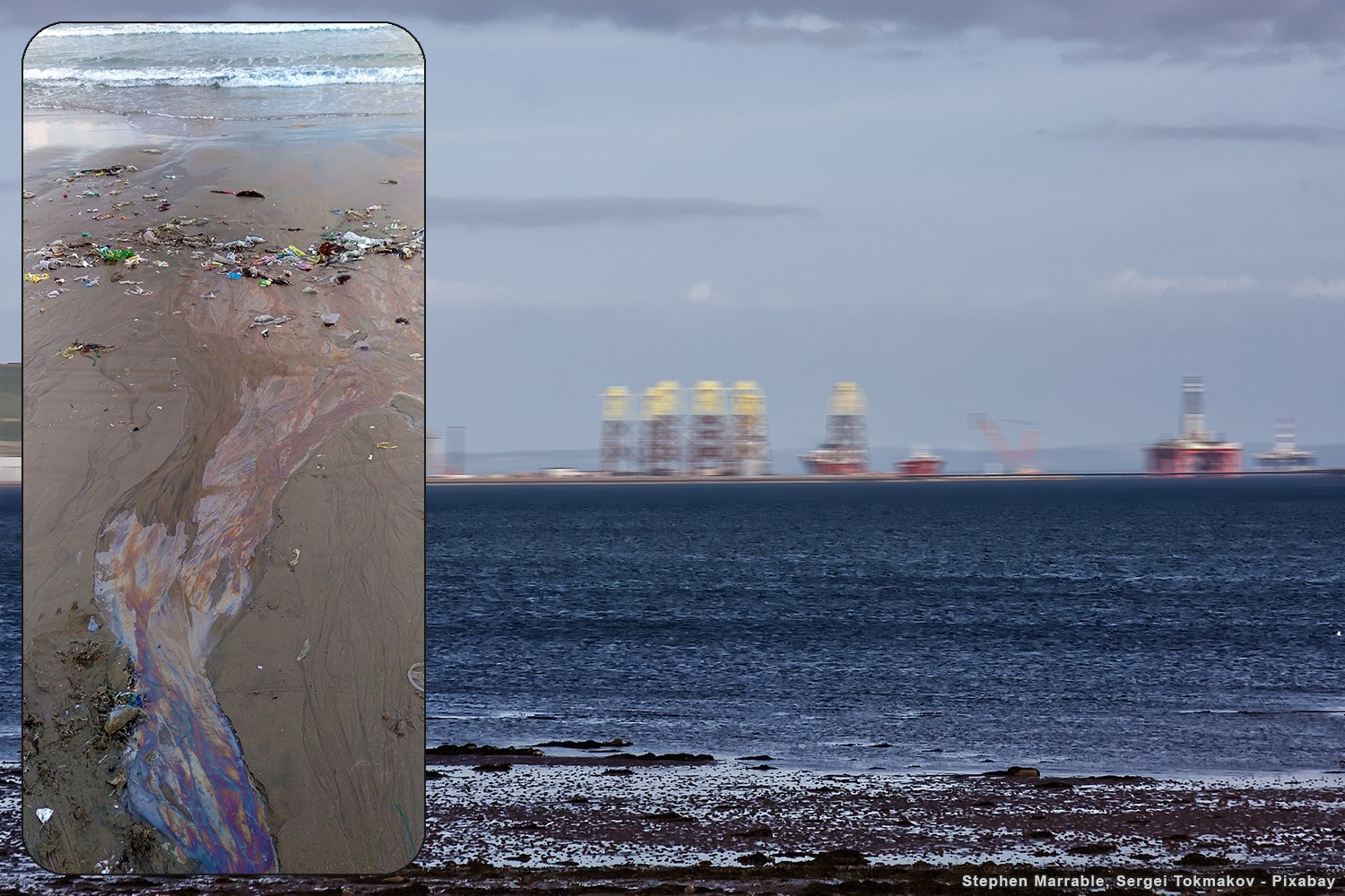 A legnagyobb környezeti katasztrófák közé tartozik, amikor egy mélytengeri fúrótoronynál gondatlanság, vagy baleset következtében a tengerbe olajbeömlés következik be, vagy ha egy olajszállító tanker zátonyra fut, vagy valamilyen más módon megsérül és az olaj a tengerbe kerül [23][24].